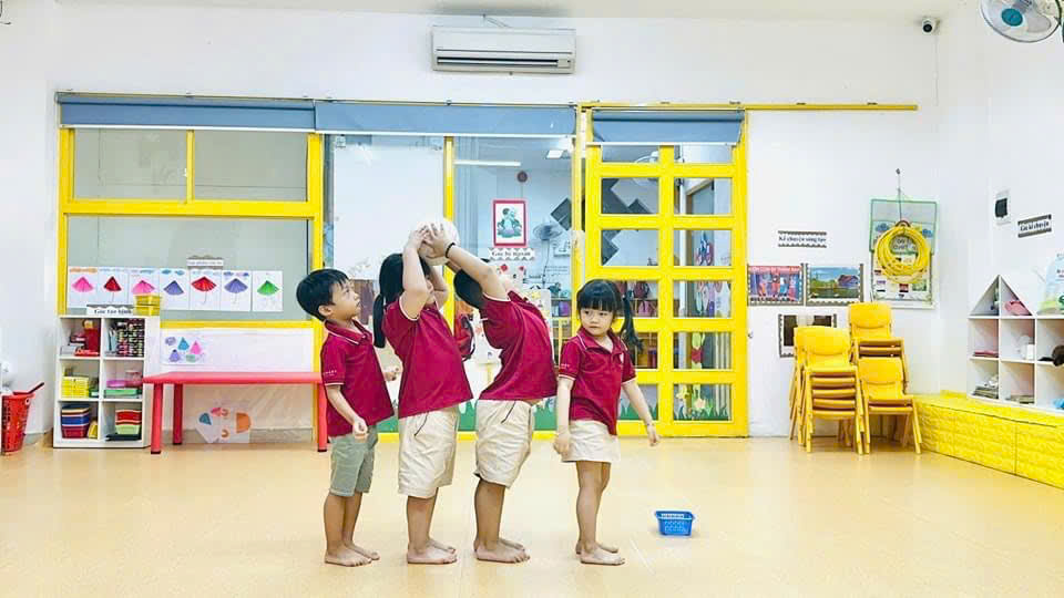 Bé lớp Chồi vui học thể chất "Chuyền bóng qua đầu"