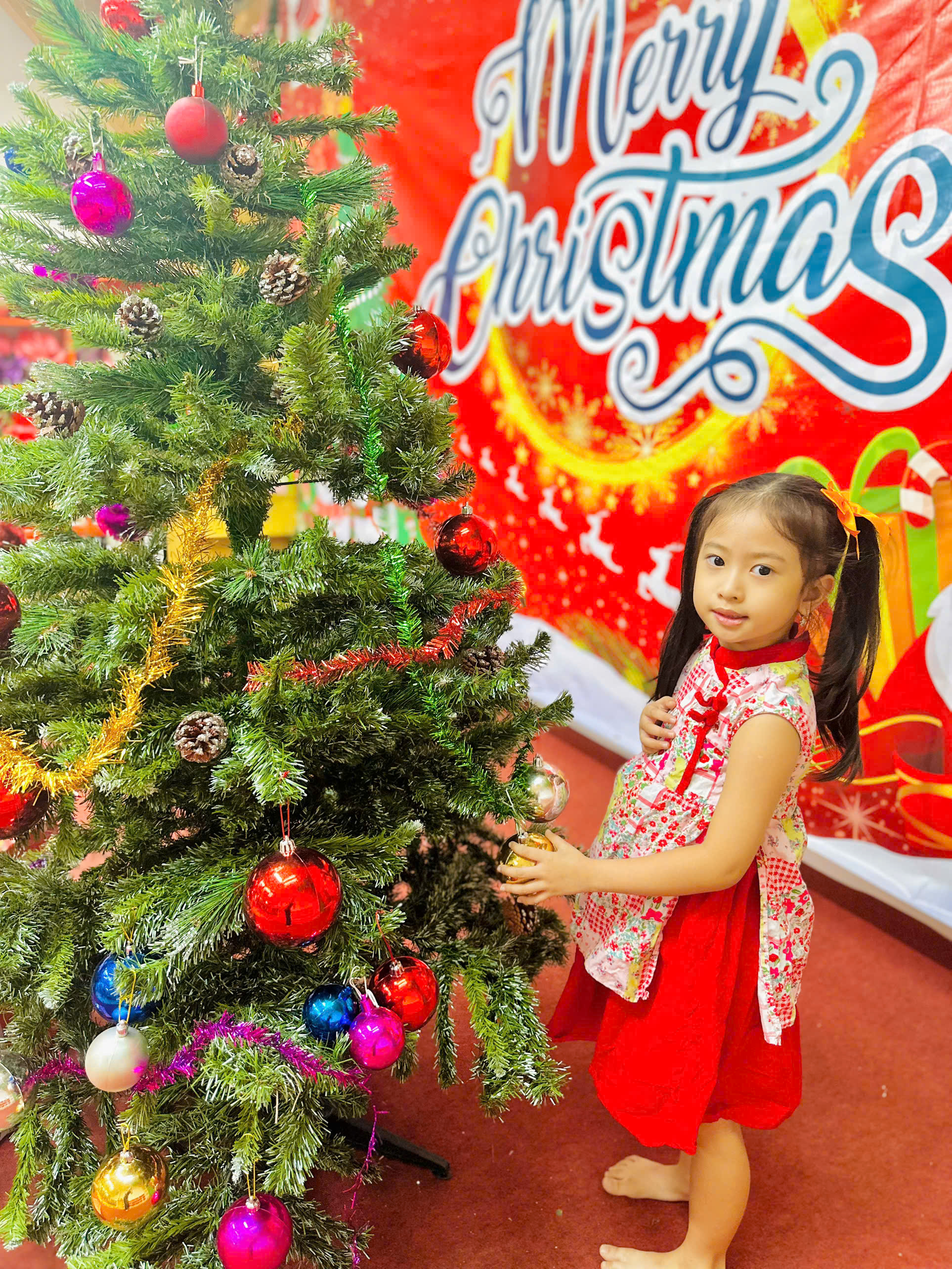 Bé lớp Chồi vui trang trí cây thông Noel