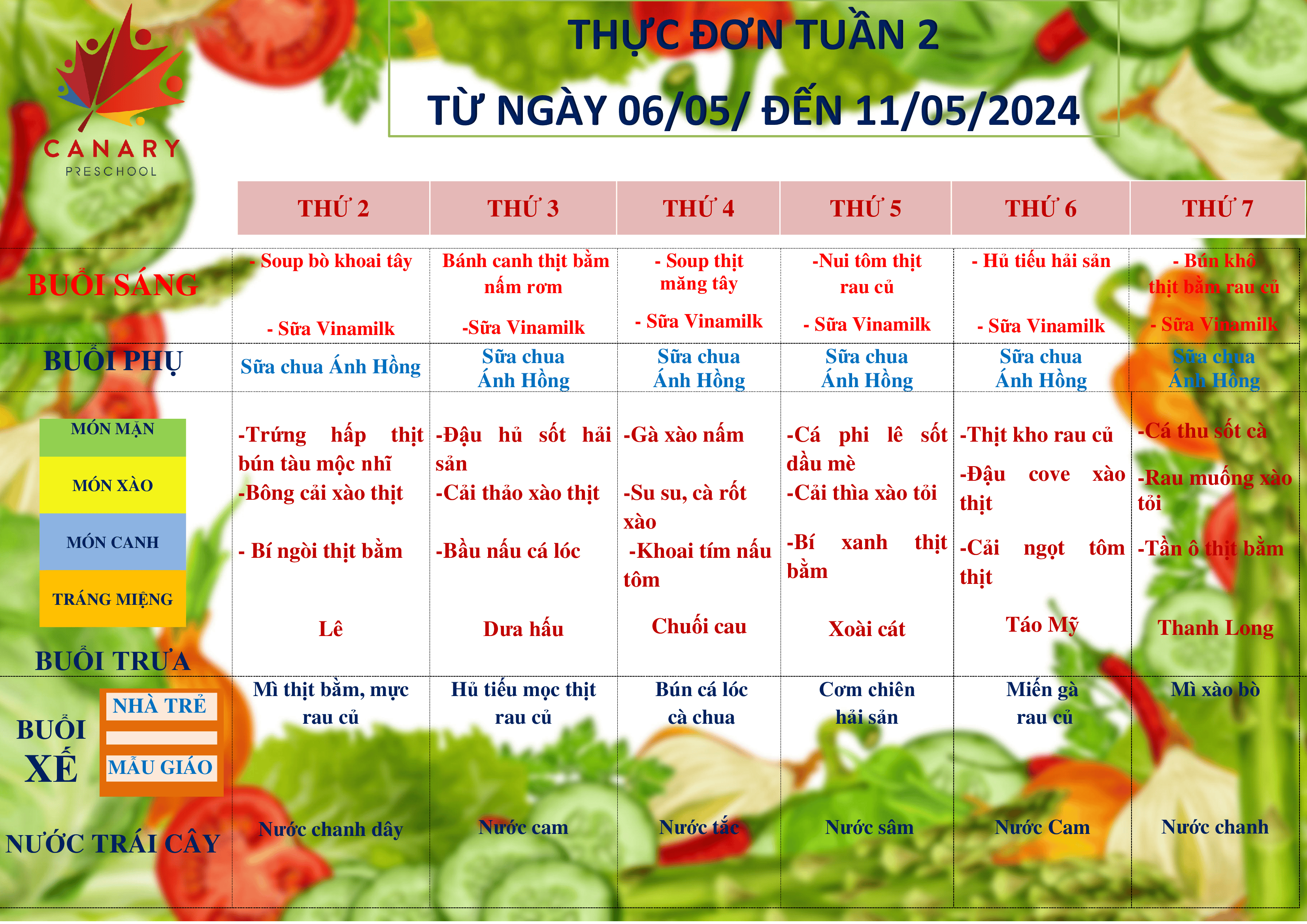 Dưới đây là những thông tin chi tiết về thực đơn trường mầm non Cánh Én Tuổi Thơ để ba mẹ có thể tham khảo.